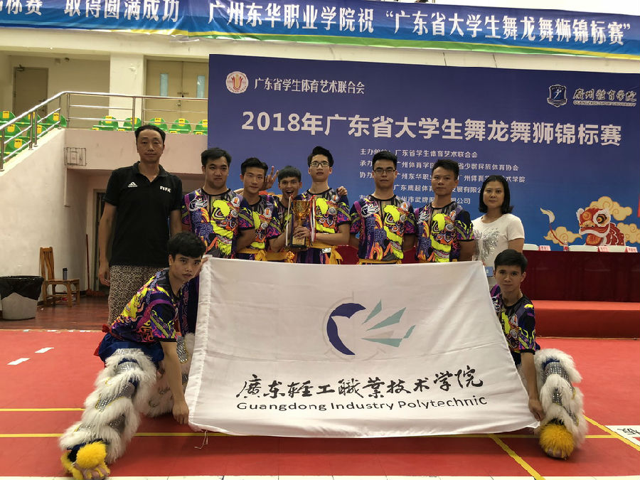 2018年广东省大学生舞龙舞狮锦标赛于5月27日在广州圆满结束。由我校声像171陈武程、数控162程之晟、机电172莫晓云、精化162周廉昌、餐饮161林银跃、模具173邓汉聪、机器人172谢星源、产品171李鑫等8位学生组成的学校醒狮队,最终以团体总分第二名的好成绩获得男子传统南狮(高职组)二等奖,很好展现了“广轻人”的精神风貌。张红雷、梁松尚老师被组委会评为“优秀教练员”。