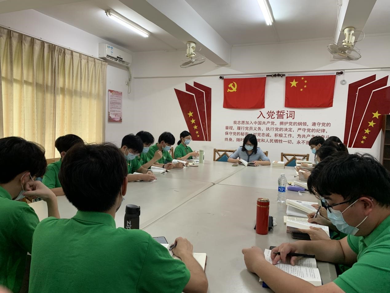 生态环境技术学院学生党支部于6月8日下午两点半在行政楼党员活动室开展主题党日活动——红色书籍学习交流。出席本次活动的有学院学生党支部书记罗雪榕老师、学院党总支组织委员常晶晶老师,以及全体学生党员。