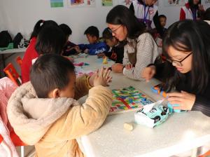 志愿者们从学校出发,徒步到黄洞村,而后志愿者们走进黄洞村内将孩子们接到幸福院中,许多家长也陪同前往。在活动中,志愿者们与小朋友们进行了许多游戏互动,包括折纸、象棋、飞行棋、画画等。志愿者们全程陪伴小朋友们,辅导小朋友们做课后作业。在志愿者们的陪伴下,小朋友们玩得不亦乐乎,义教活动进行的同时,志愿者们与小朋友的距离逐渐拉近。义教活动持续了大约一个半小时,整个幸福院里充满了欢笑,每个小朋友脸上都洋溢着快乐的笑容。临近中午,义教活动圆满结束,志愿者们将所有小朋友安全送到家后,徒步返校。