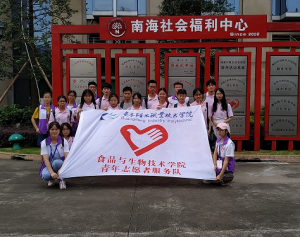 于6月18日下午1:30,食品与生物技术学院青年志愿者服务队队员及参与此次活动的志愿者在广东轻工职业技术学院南海校区校门口集合并一齐前往广东省佛山市南海区的南海福利院中心进行慰问老人的活动。