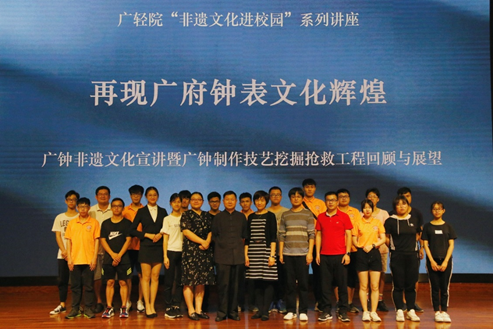 4月28日晚上,广东轻工职业技术学院的机电技术学院在图书馆报告厅隆重举行了“非遗文化进校园”之广钟非遗文化宣讲暨广钟制作技艺挖掘抢救工程回顾与展望大会。莅临本次大会的嘉宾有广钟历史文化研究院(广州)有限公司董事长、联合创办人魏广文先生、党总支书记宋霞老师、副院长蔡菊老师等。本次大会由魏广文教授主讲,他从广钟的起源开始讲起,结合生动的故事向同学们一一介绍了广钟出现的时间、地点和历史发展,使同学们对广钟文化有了深刻的了解。接着魏教授又向同学们展示了一系列广钟的图片,介绍了广钟独特的广珐琅技术。同学们看着这些精美的图片,不仅感叹广钟的精致,更感叹工匠们细腻独特手法和高超的技艺。最后,魏教授表示他将会支持我院开展广钟大师工作室,并联合我校共同培养广钟非物质文化遗产的继承人,也表达了对同学们的期待。
