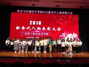 4月8日晚上7:30,食品与生物技术学院于广东轻工职业技术学院南海校区图书馆报告厅举行2018年新食代人物表彰大会。出席本次大会的老师有食品与生物技术学院党总支书记揭广川老师、党总支副书记刘嘉俊老师等,以及食品学院2017级、2018级的同学们。