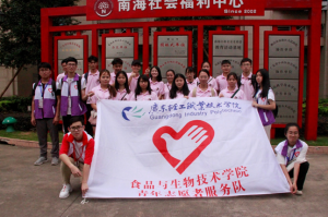 4月9日下午1:30,食品与生物技术学院青年志愿者服务队队员以及参加本次活动的志愿者在广东轻工职业技术学院南海校区门口集合,准备一同前往南海福利中心慰问长者。