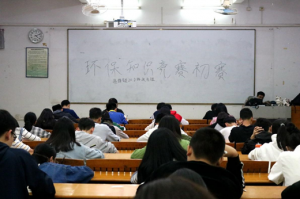 为了积极响应习近平总书记十九大报告中倡导加快生态文明体制改革、推进绿色发展、建设美丽中国的战略部署。4月12日,由生态环境技术学院承办的环保知识竞赛初赛在教学楼2108、2109教室如期举行,本次初赛的比赛形式为笔试,此次比赛会选出成绩前八名的选手进入决赛。