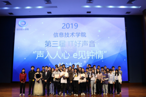 4月12日晚上7:00,信息技术学院在我校南海校区图书馆报告厅举办了第三届IT好声音“声入人心 e见钟情”总决赛。本次比赛评委由我校兄弟学院演唱队队长担任,出席本次活动的嘉宾有信息学院院党总支副书记罗志聪、分团委书记李康泉等老师。