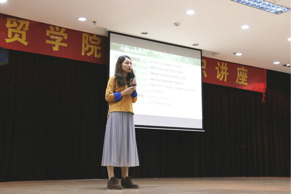 财贸学院于12月19日在广州校区第二工业实训楼B903举行了有关“三方协议”和“劳动合同”法律知识讲座。此次讲座出席的嘉宾有财贸学院辅导员郭剑老师,法律学学士老师张晓荣,财贸学院主席团副书记林观梅,主席李博、副主席陈艺诗等学生干部。