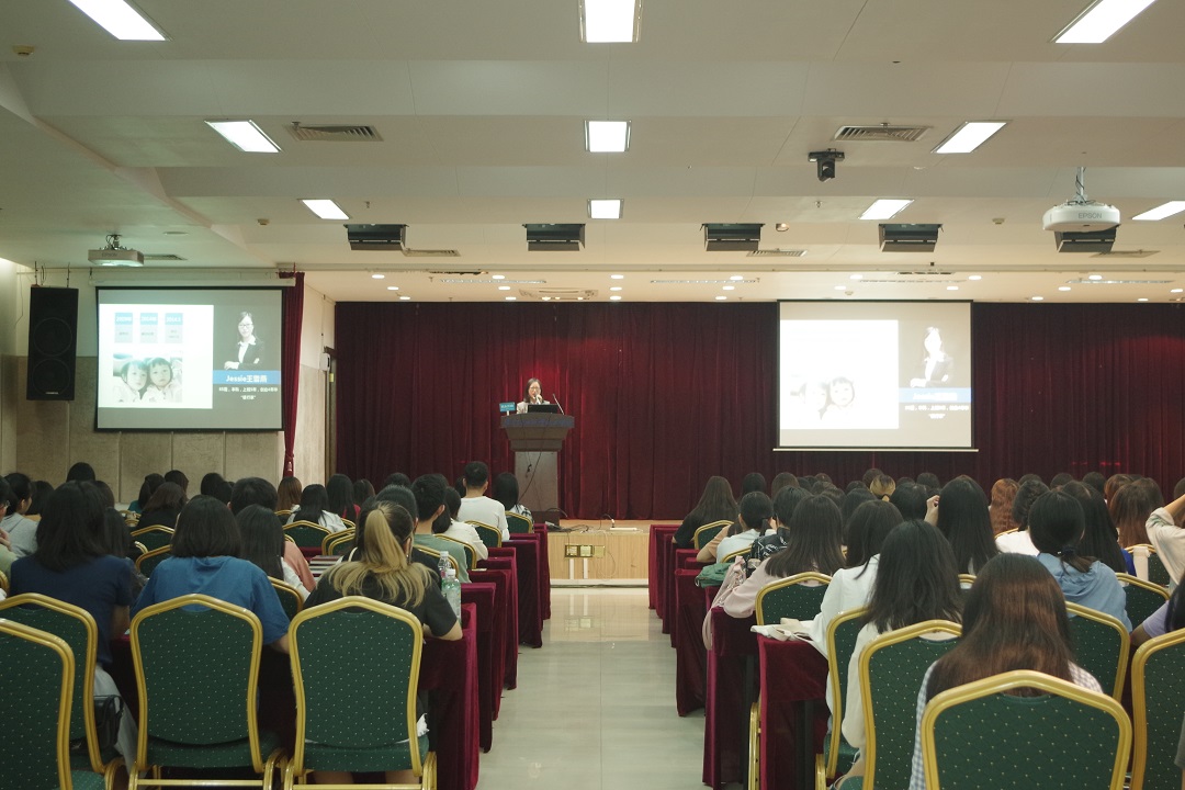 分享会上,首先Jessie女士向应用外语学院大三的学生分享了她的创业经历,她讲诉了自己是如何在身为一名宝妈的情况下同时进行创业的经历。接着她指出,在创业奋斗的过程中,坚持是唯一的途径。另外,Jessie女士还分析了当前的创业形势和趋势,鼓励大家抓住机会,踊跃投身创业。随后,事业合伙人Leo先生就企业文化向在场大三学生展开了详细的介绍,让他们对公司有了进一步的了解。最后,市场策划Linda女士与学生们进行现场互动,学生们积极参与答题、领取礼物,现场气氛十分活跃。