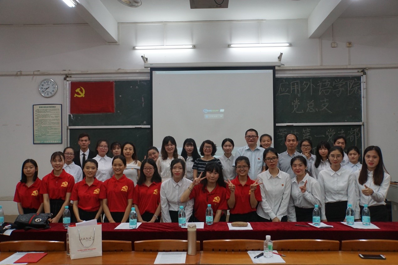 7月6日晚7:30分,应用外语学院在南海校区教学楼2309举行了学生党支部大会。出席大会现场的嘉宾有该院党政负责人景海明老师、党总支副书记闫卫锋老师和党总支纪检委员曾小娟老师等。参加此次学生党支部大会的成员有大一入党积极分子、学生干部和大二预备党员,。