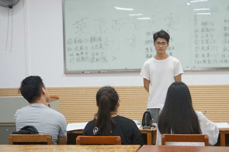 本次初赛,各位选手先用英文简单的自我介绍30秒,然后现场随机抽取外国诗歌和绕口令,进行比拼。选手与评委全程用英语交流,场内既轻松愉悦,又不失浓浓的外语氛围。本次比赛共有27人参加,其中大多数参赛选手来自外语学院。当然,也有一些外院的同学前来挑战。
