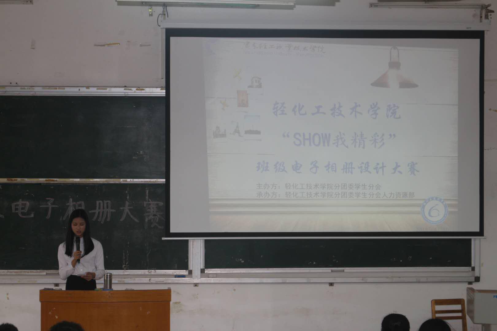 轻化工技术学院于4月10日14:30分在教学楼举行了 “SHOW我精彩”班级电子相册设计大赛。出席本次活动的嘉宾有副书记谢剑风,副主席郑行燕和莫海欣等人。举办此次活动目的是为了培育学生的创新能力与实践能力以及提高学生电脑制作水平,进而丰富同学们的校园生活。这不仅激发当代大学生的创造力,还能展示广轻学子们的优良形象。