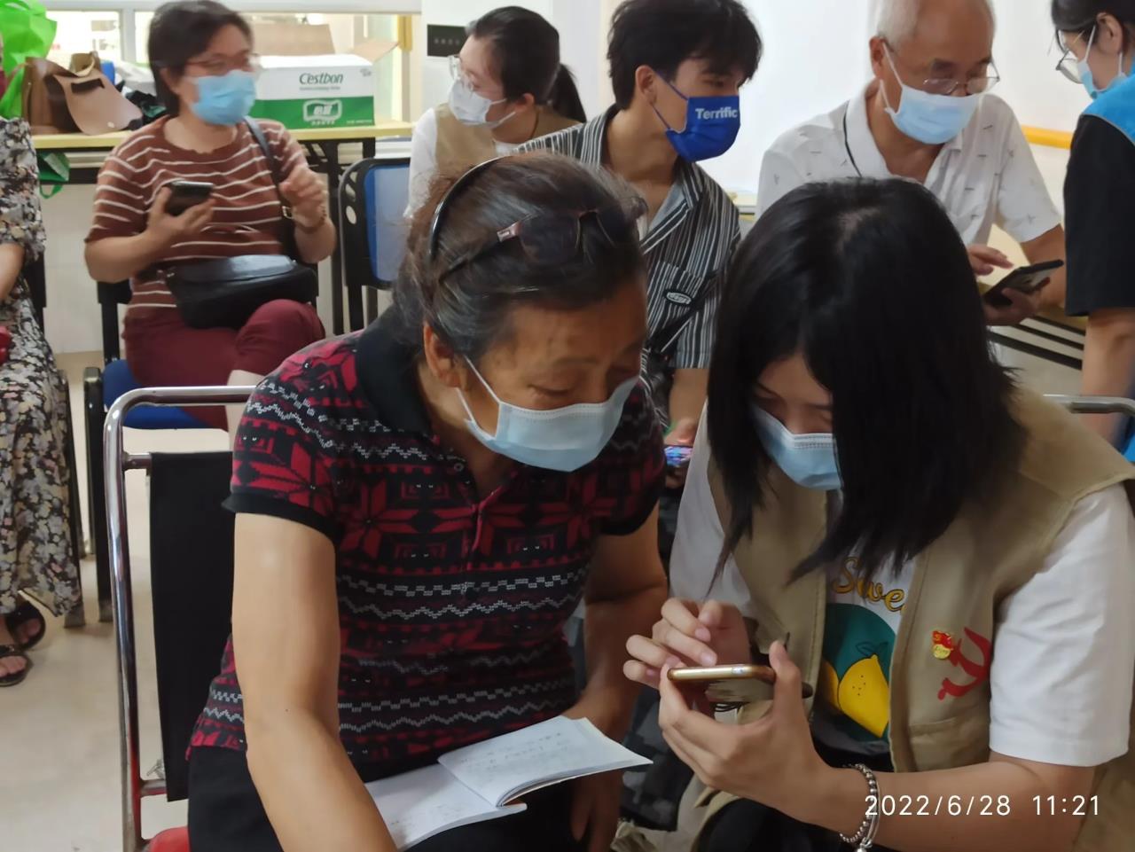 首先,我们实践团队提前与老人院负责人沟通这次活动的流程;活动期间,我们团员会与社工相互合作去服务老人,为他们解疑;其次,我们实践团队按策划书的分工进行活动;一个成员对参加人员进行测温,两位成员在门口负责参与人员签到,三位成员提前对现场进行相应布置,其余成员负责维护秩序。